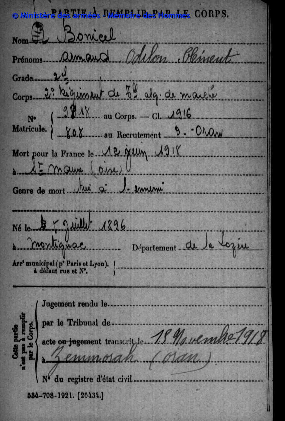 Zouave au 5ème Régiment de Tirailleurs Algériens, célibataire