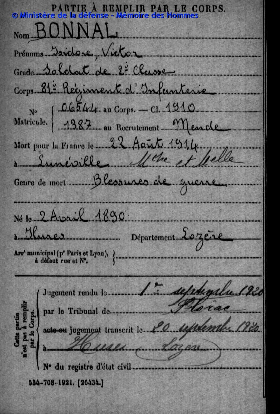 Le 22 août 1914, l’armée compte plus de 1 300 hommes tués, blessés ou disparus. Isidore fait partie de ces disparus. Sa mort sera officiellement fixée à ce jour.